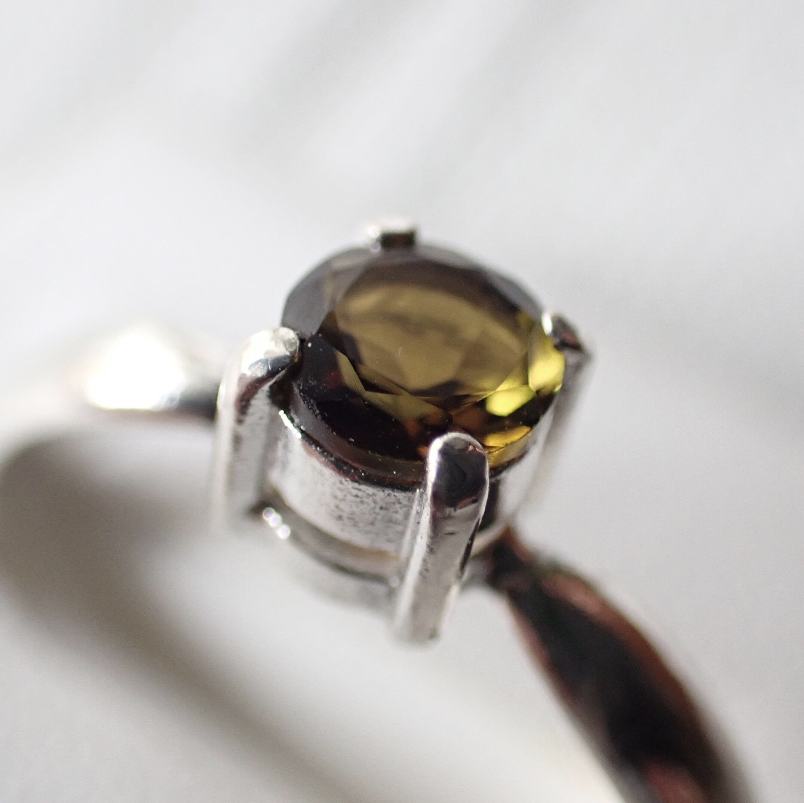見る角度によってグリーン寄りに見えたり、イエロー寄りに見えたりと、とても味わい深い色のトルマリンです。